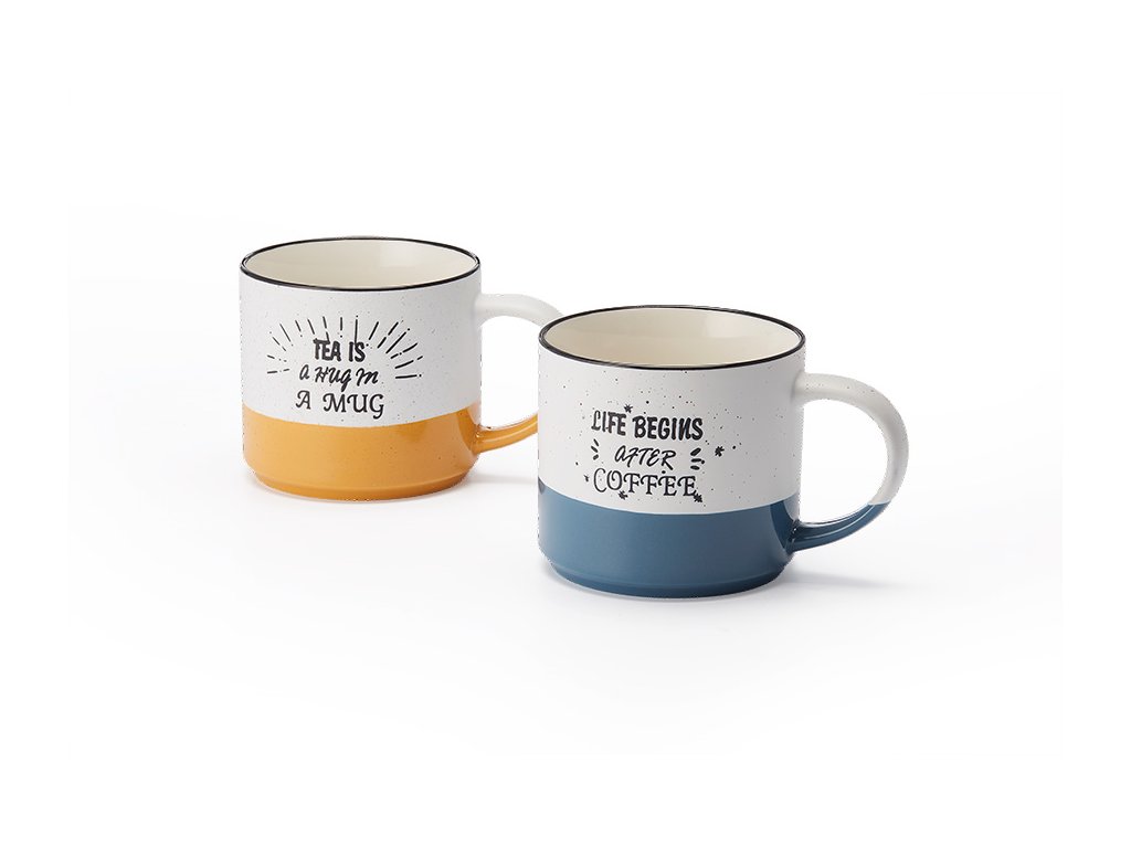 Veselé výroky na tomto krásnom páre hrnčekov zaisťujú dobrú náladu a šťastný štart do dňa.